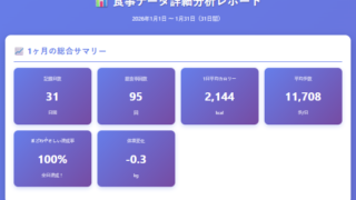 🏆【保存版】「まごわやさしい」31日間100%達成!AIと実践した「整え」の全記録🏆 プロの分析:AIが導き出した「継続の黄金律」1月の食事記録をAI(Claude)に詳細分析してもらい、その結果を「健康的な食生活のヒント集」として1枚のガ...